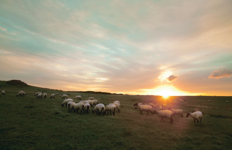 最初に訪れたのは、北海道北部の西海岸・羽幌町の沖合いに浮かぶ島――焼尻島。羽幌港からフェリーで約1時間の場所にある。島の約3分の1が羊たちのための牧草地となっており、ここで600頭もの羊が放牧されている。海に囲まれた広大な敷地で羊が草を食む様子は、まるでスコットランドのようである。この楽園でのびのびと暮らす姿は、静かな島の牧歌的な風景となり、見る者に癒しを与えてくれる。