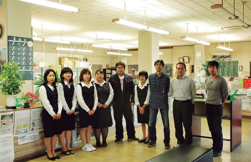 県漁協佐賀関支店の皆さん。右端が藤本さん。佐賀関支店の荷さばき施設は来年、3月にリニューアルし、より効率的に発送できるようなシステムになる。