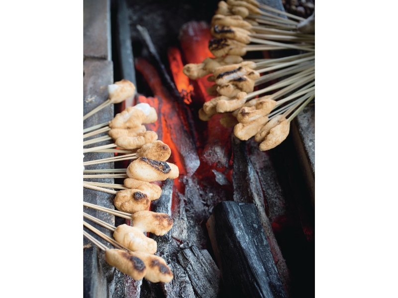 いずれが本家か元祖かはさておき、どちらの店で食べても、さほど味は変わらない。竹に刺した親指ほどの餅にきな粉をまぶし、炭火で炙った後に、白味噌ベースのタレを絡める。程よい甘さと口当たりの良さで、幾つでも食べられそうだ。