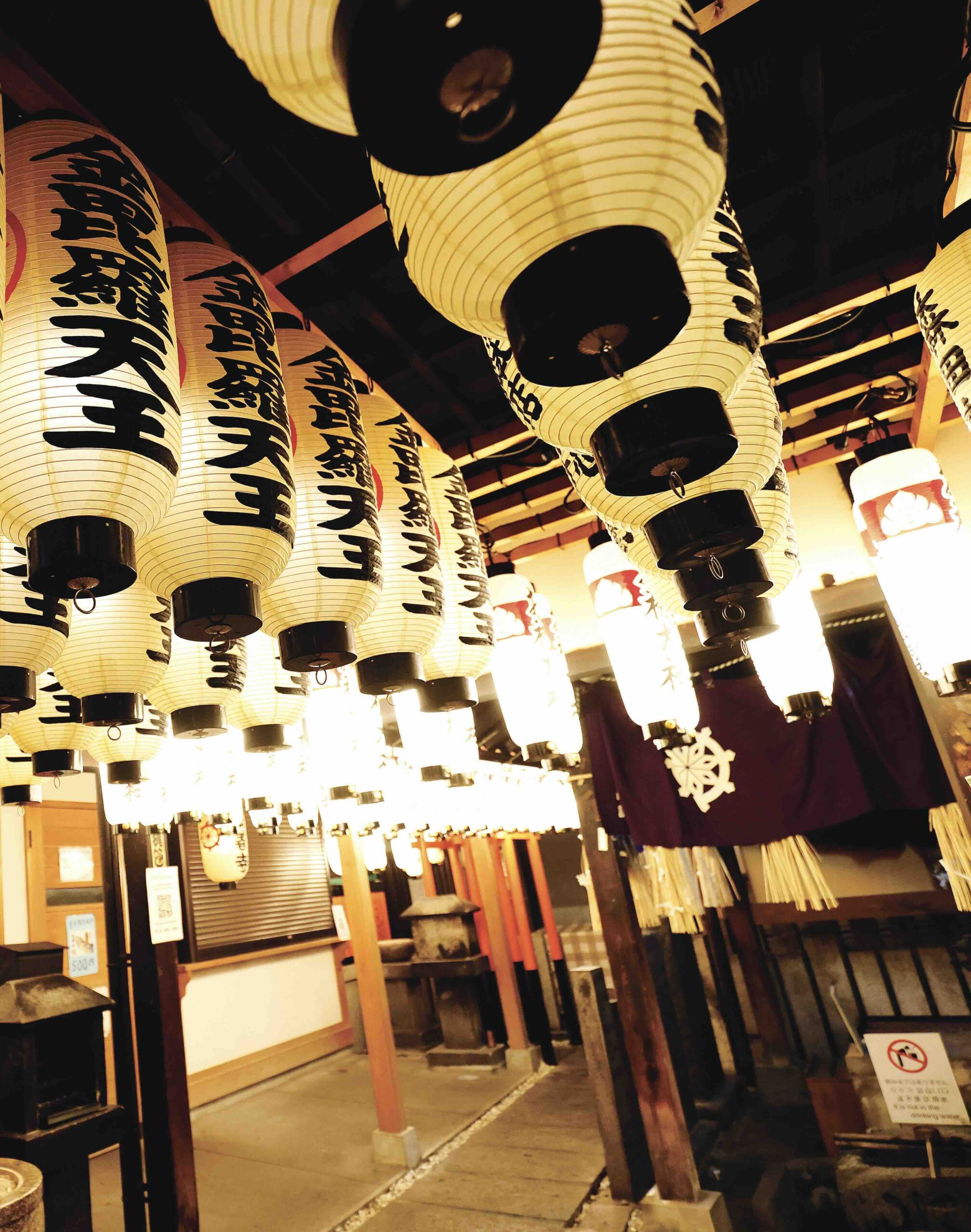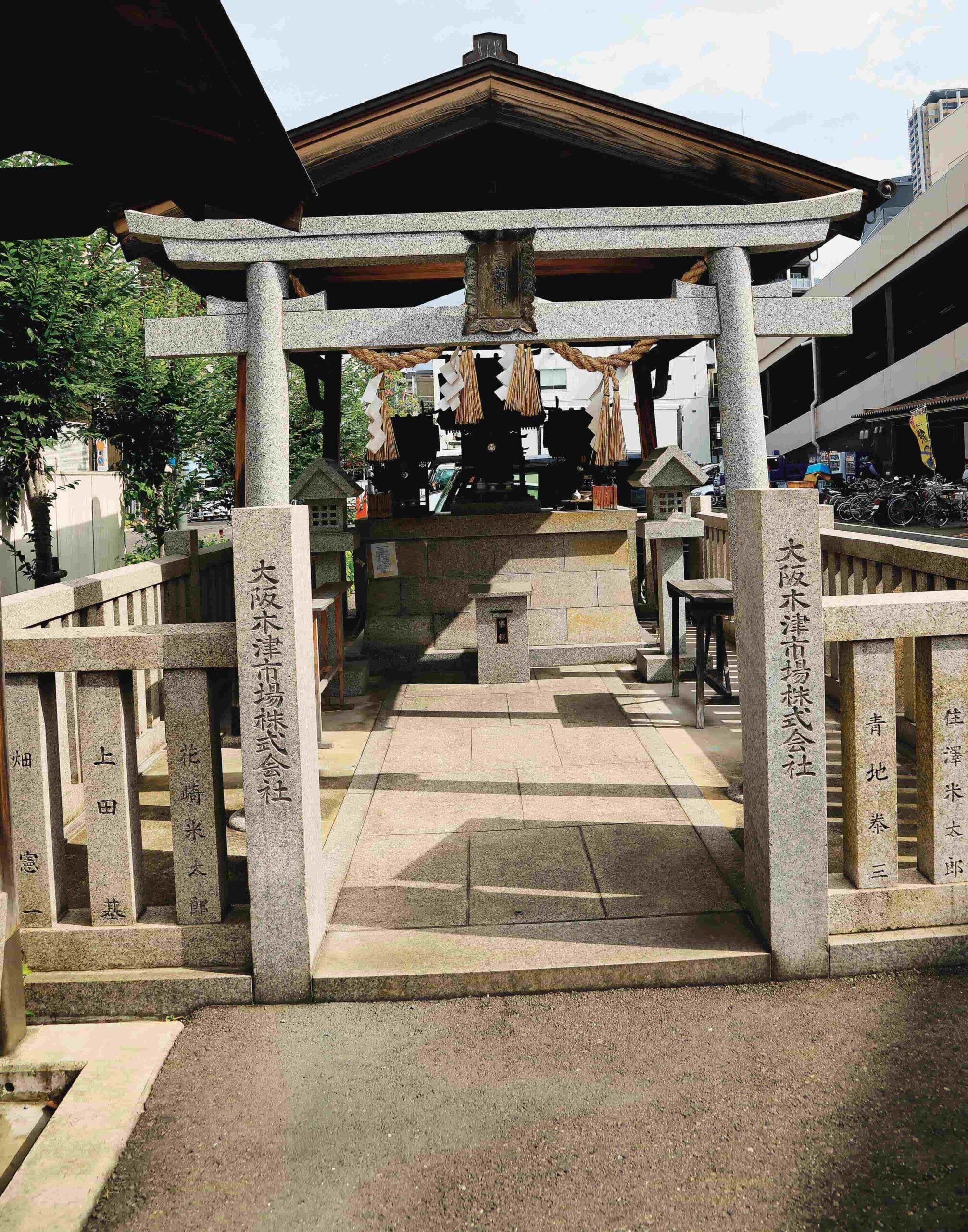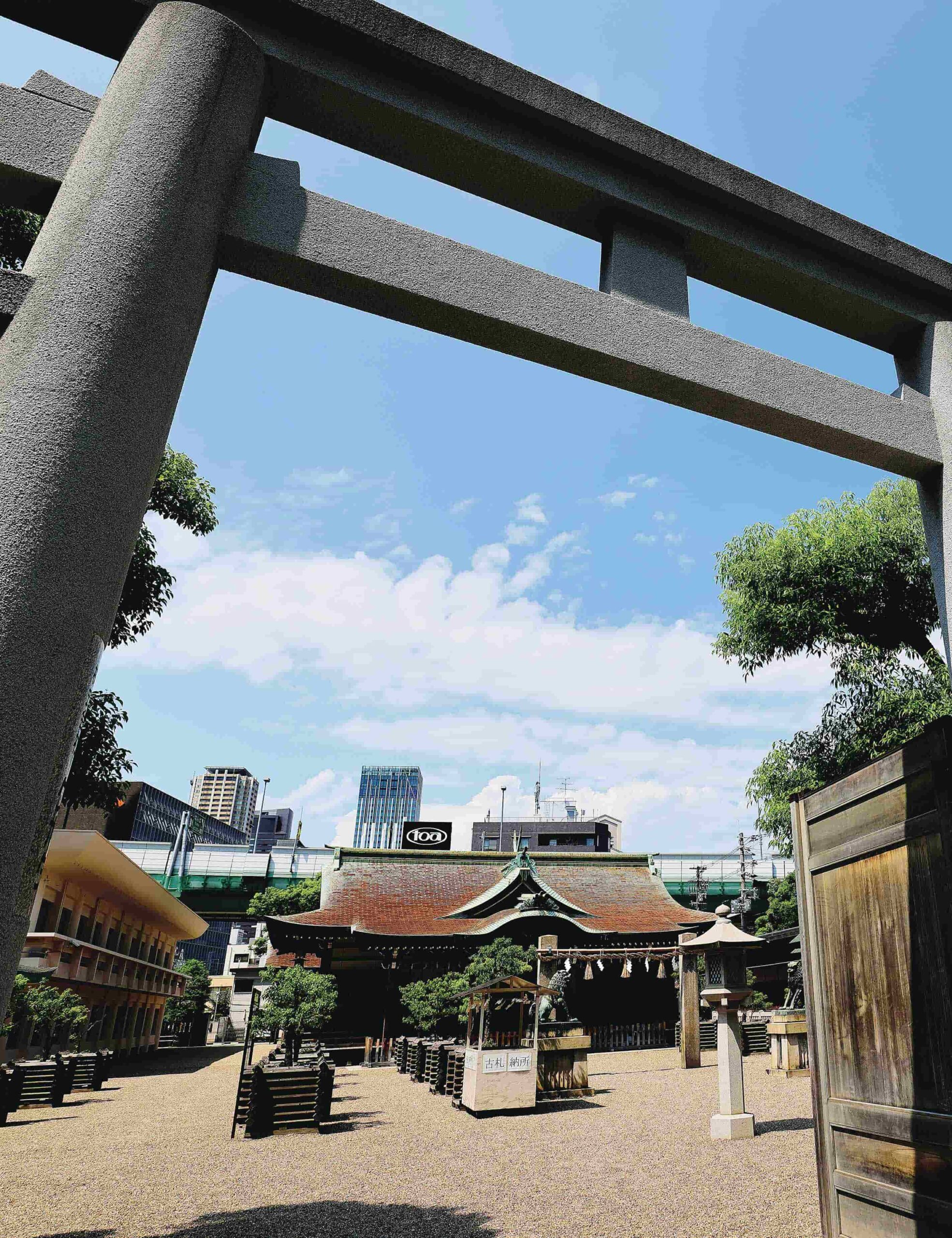 商売繫盛にご利益があるとして大阪では最も有名な神社の一つ。瑞垣(みずかき)や灯篭(とうろう)には寄進したそうそうたる企業名が並ぶ。