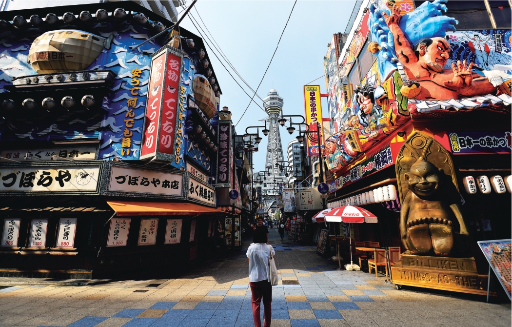 「キッチュ」とは、もともとドイツ語で「低俗なもの、悪趣味なもの」を意味するが、時代とともにニュアンスを変え、今では「低俗だが人を惹きつけるもの」といった意味で使われることが多い。新世界を出て難波、道頓堀を歩くと、派手なネオンやカニにタコ焼き、店主の親父を象った飲食店の巨大な看板の玉手箱のようで、まさにキッチュな魅力がある。