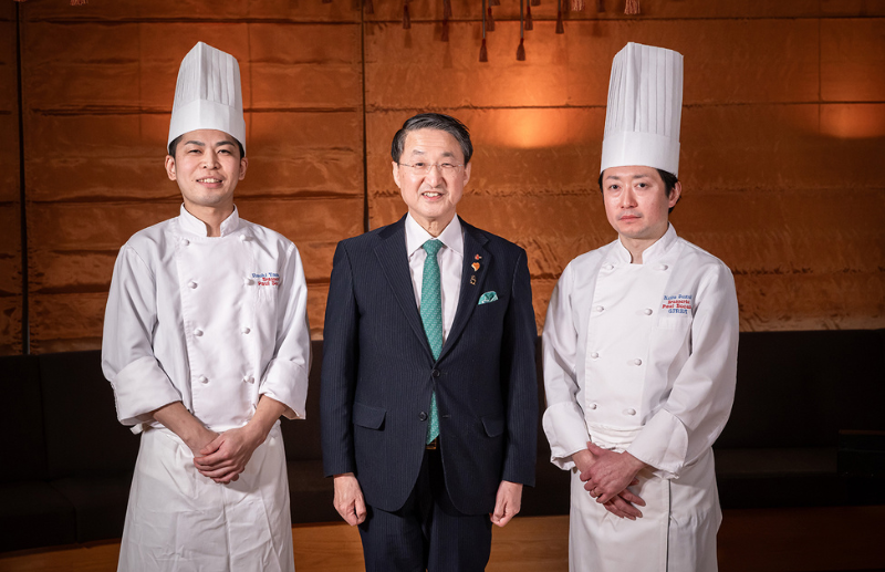 今回提供されたのは、この「鳥取和牛オレイン55」を使用した特別コース。「ブラッスリー ポール・ボキューズ」の銀座から鈴木啓太シェフ、大丸東京から山本尚輝シェフ、ミュゼから植田潤シェフが、それぞれの感性で鳥取食材を存分に生かした一皿を作り出した。また料理に合わせて用意されたのは、鳥取県の日本酒とワイン。いずれも鳥取和牛のおいしさを引き立てつつも個性のある味わいが印象に残る一杯であった。