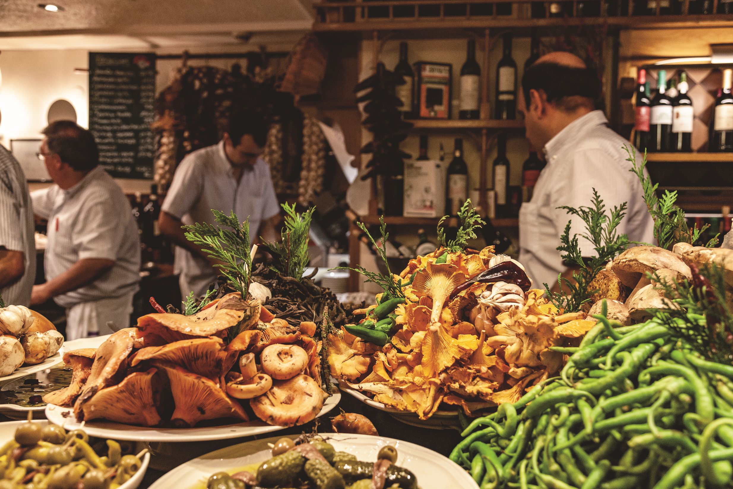 海の幸、山の幸をもたらす豊かな自然は、同時に厳しい生活環境でもある。そこでは牧羊や漁業などの共同作業を通じてともに食べ、歌う習慣が生まれ、結び付きの強いコミュニティー文化が育まれ、ソシエダ・ガストロノミカ(バスク語でチョコ)、いわゆる「美食クラブ」の背景となって、バスクの食文化を支えていった。