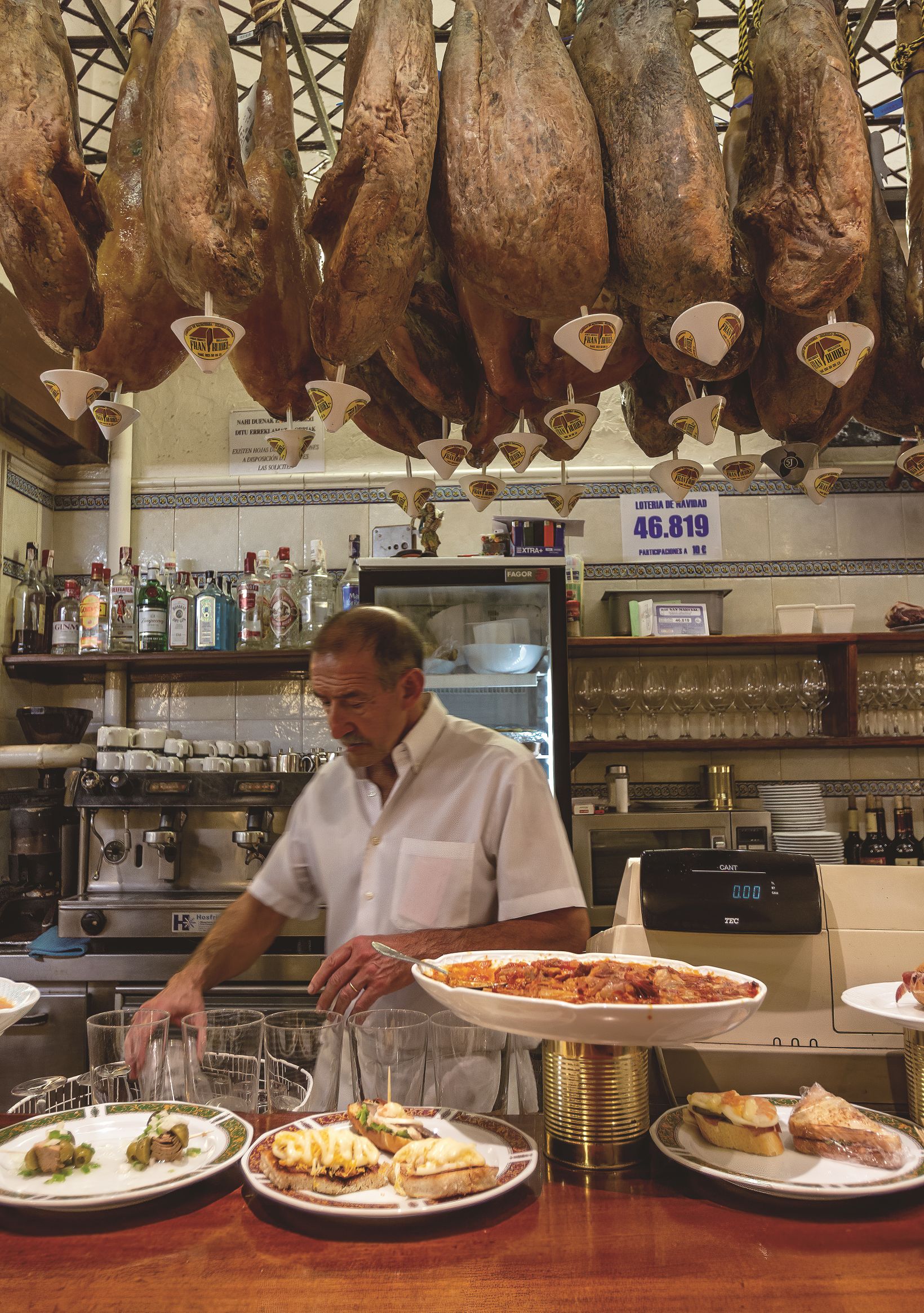 今日もまた、バルのカウンターには食欲をそそる新しい料理が並んでいるに違いない 。ファン・マリ・アルサックは言う 。