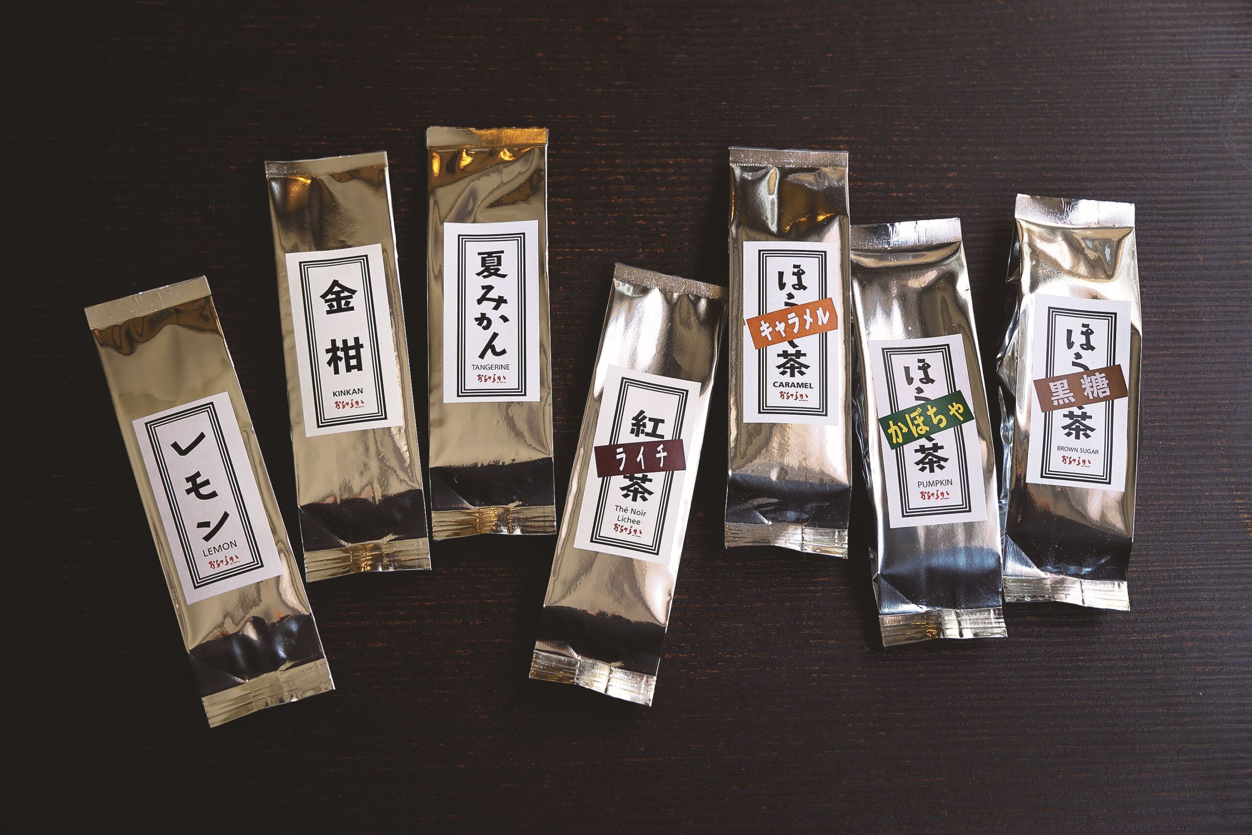 ダントン氏は2005年に吉祥寺に日本茶専門店「おちゃらか」をオープンし、「フレーバー日本茶」を提案。多くの人の興味と支持を集めた。その後、日本橋のコレド室町への移転を経て、20年に下町の趣と活気を備えた街、人形町へ。今ではフレーバーの数は煎茶ベースが7種、ほうじ茶ベースが16種、和紅茶ベースが7種、そしてこれらに季節のフレーバーを加えると全部で60種強へと広がっている。それらの内容は、夏みかん、黄桃、パイナップルといったフルーツ系のほか、焼き芋、黒糖、キャラメルなどのスイーツ系、変わったところでは日本酒やウイスキーといったものまで実に幅広い。