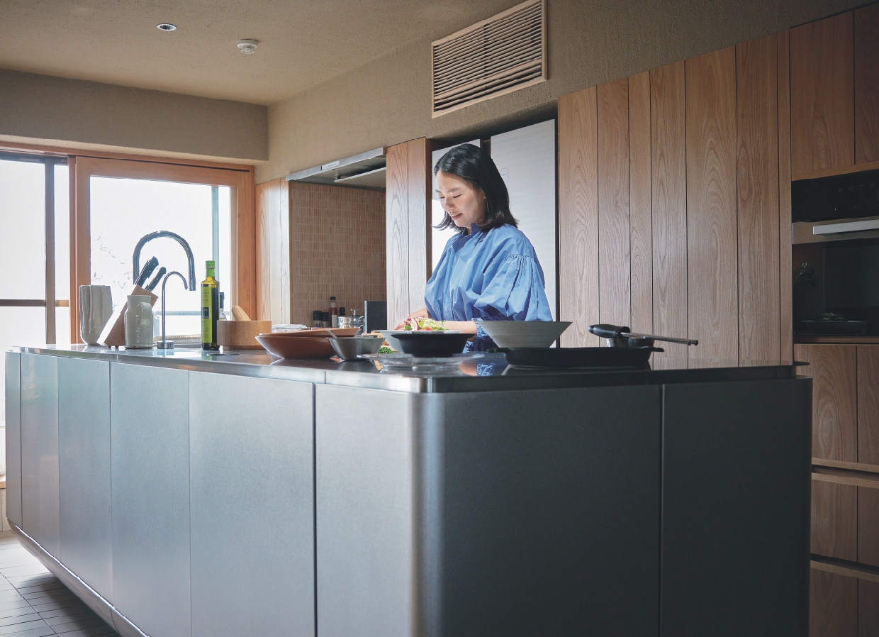 「日常とは異なる心が弾むような別荘にしたかったので、プロ仕様の機能を備えながら、インテリア性も高いマイスデルがぴったりだったんです。実際に採用してみて、クオリティーはもちろん、求める機能やデザインを全力でかなえてくれるチームに絶大な信頼感が生まれ、自邸のキッチンも依頼しました」