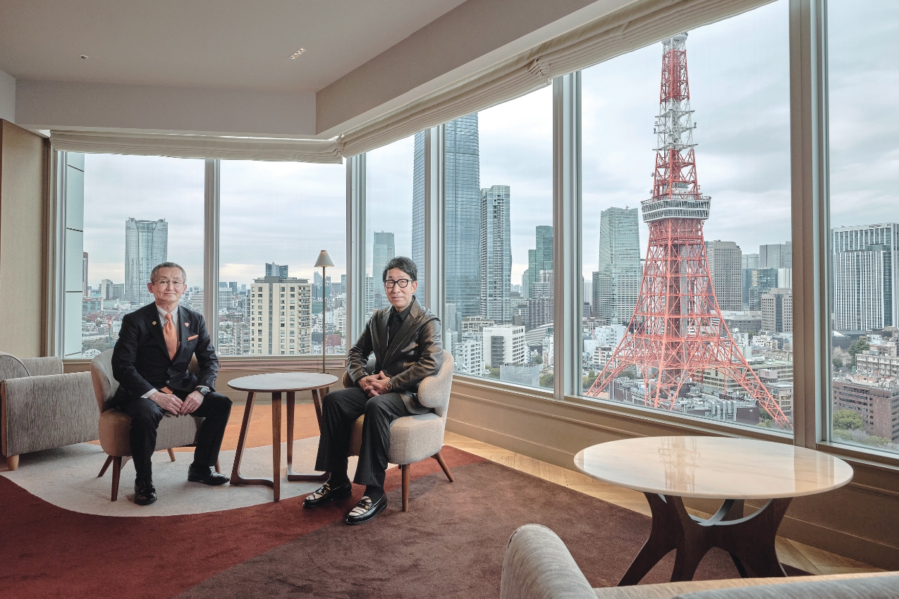 2025年4月、東京タワーに隣接するラグジュアリーホテル「ザ・プリンス パークタワー東京」が開業20周年を迎えた。そのアニバーサリーとして生まれ変わったのが、32・33階のスイートルーム、クラブラウンジ、バー、ダイニング、バンケットだ。アースカラーを基調に寄木張りの床や大理石のカウンターを配した重厚で落ち着いた空間は、モダンながらどこかノスタルジックな雰囲気を醸す。目前に広がる唯一無二のビューと共鳴し、滞在を忘れられないものにしてくれるだろう。「近年、特に増加している海外ゲストの訪日目的には、観光や食事、買い物のほか“映える写真を撮ること”が挙げられます。そこで東京タワーを間近に眺めるロケーションの魅力をこれまで以上に引き出し、“東京の特等席”を演出することに。ビューを主役にした特別感のあるプランやデザインにより、心に残る体験ができるホテルとして好評をいただいています」と、同ホテルの総支配人である神田泰寿氏が語る。